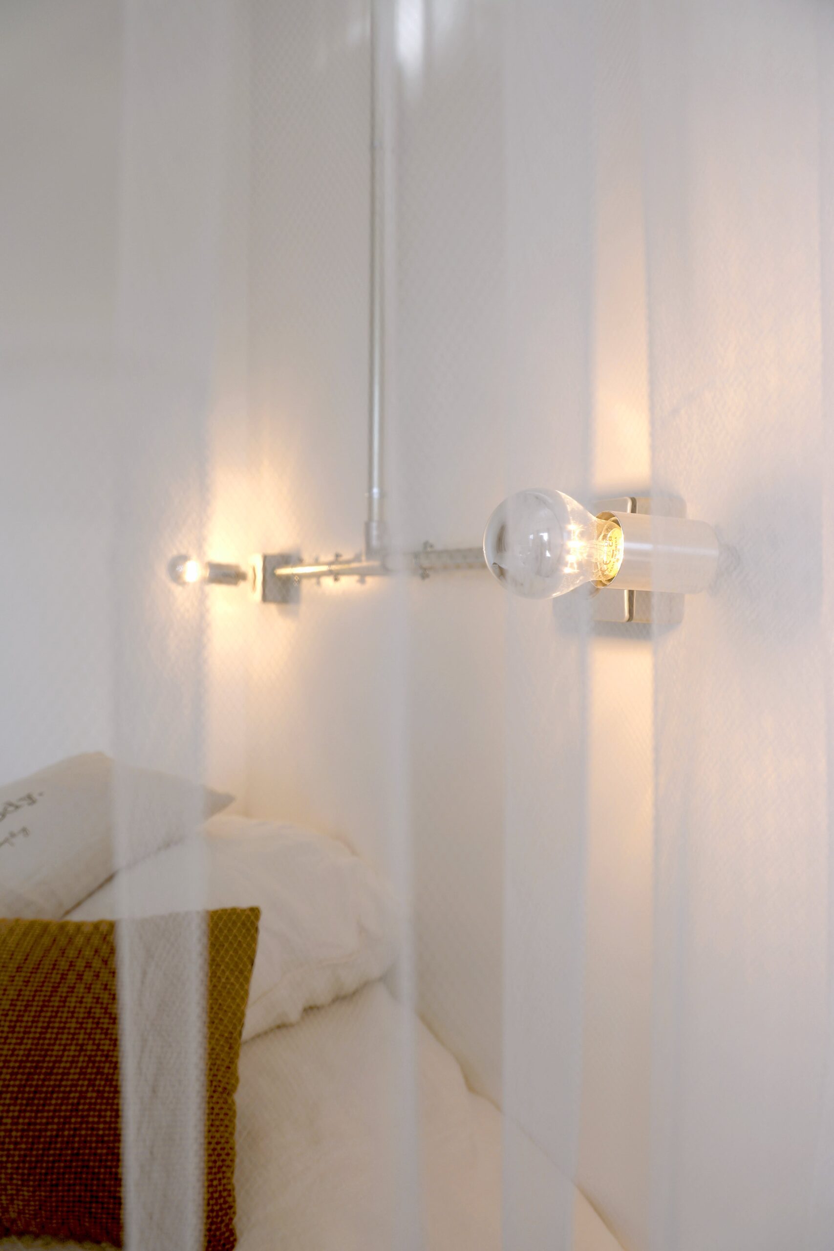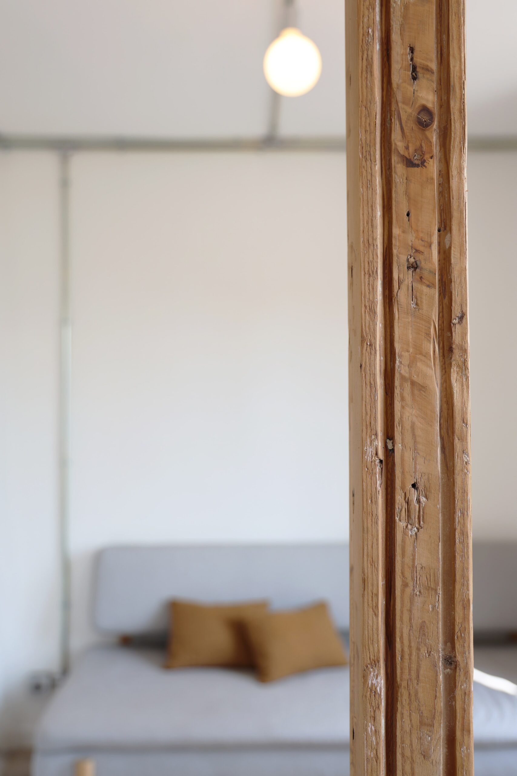 Avec un budget très limité, nous avons fait le choix d’une rénovation minimaliste et intelligente. Plutôt que de réaliser des travaux lourds, nous avons privilégié des solutions simples et économiques : l’électricité a été repensée à l’aide de tubes métalliques bruts apparents, renforçant un style brut et minimal. Le projet repose sur l’utilisation d’un nombre restreint de matériaux afin de créer une uniformité visuelle et une sensation d’espace plus généreuse.